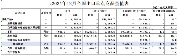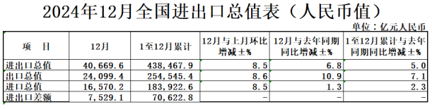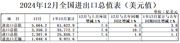 2024年全年重要外贸数据一览